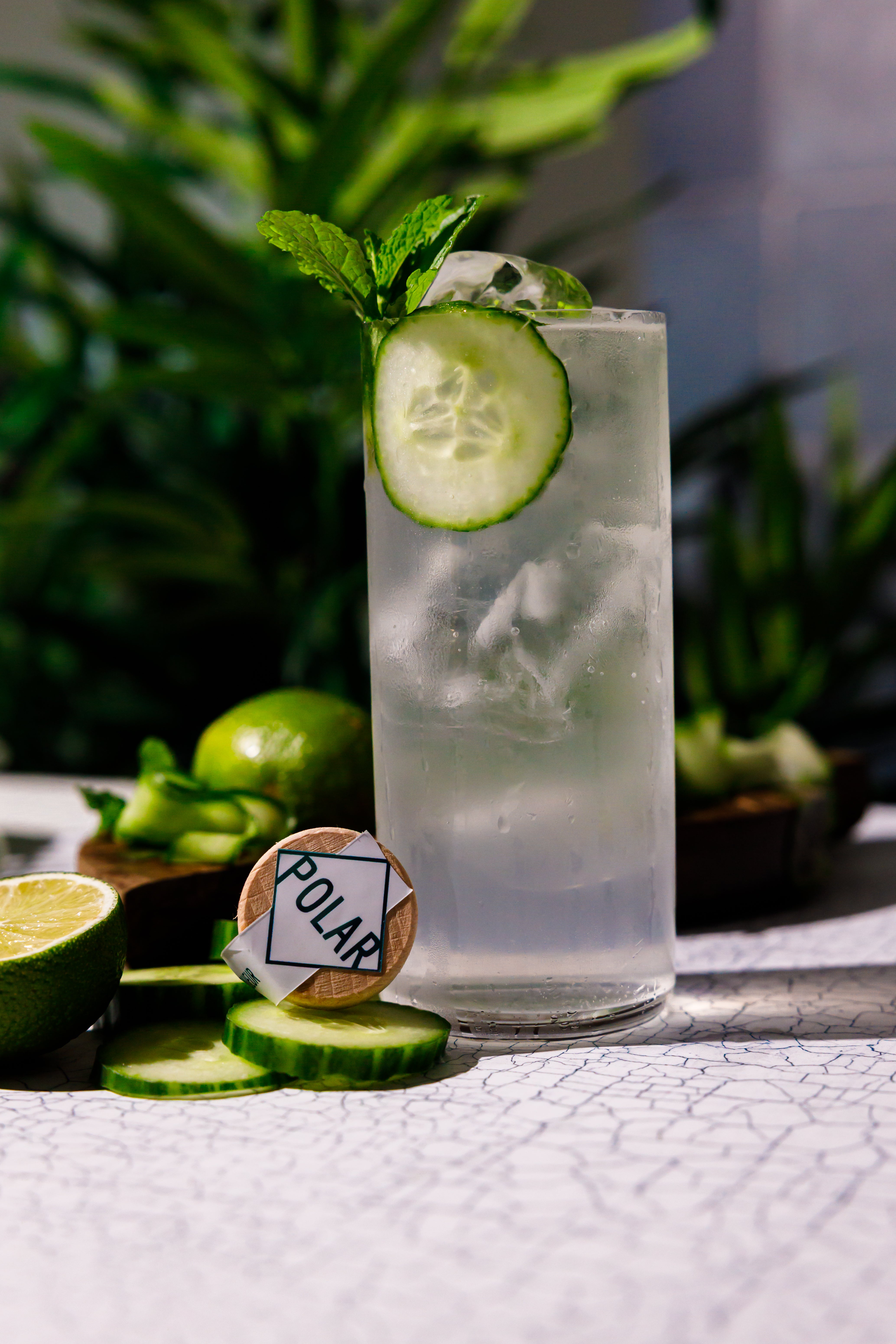Serve chilled in frozen glass with spiralled cucumber or over block of ice in short glass.