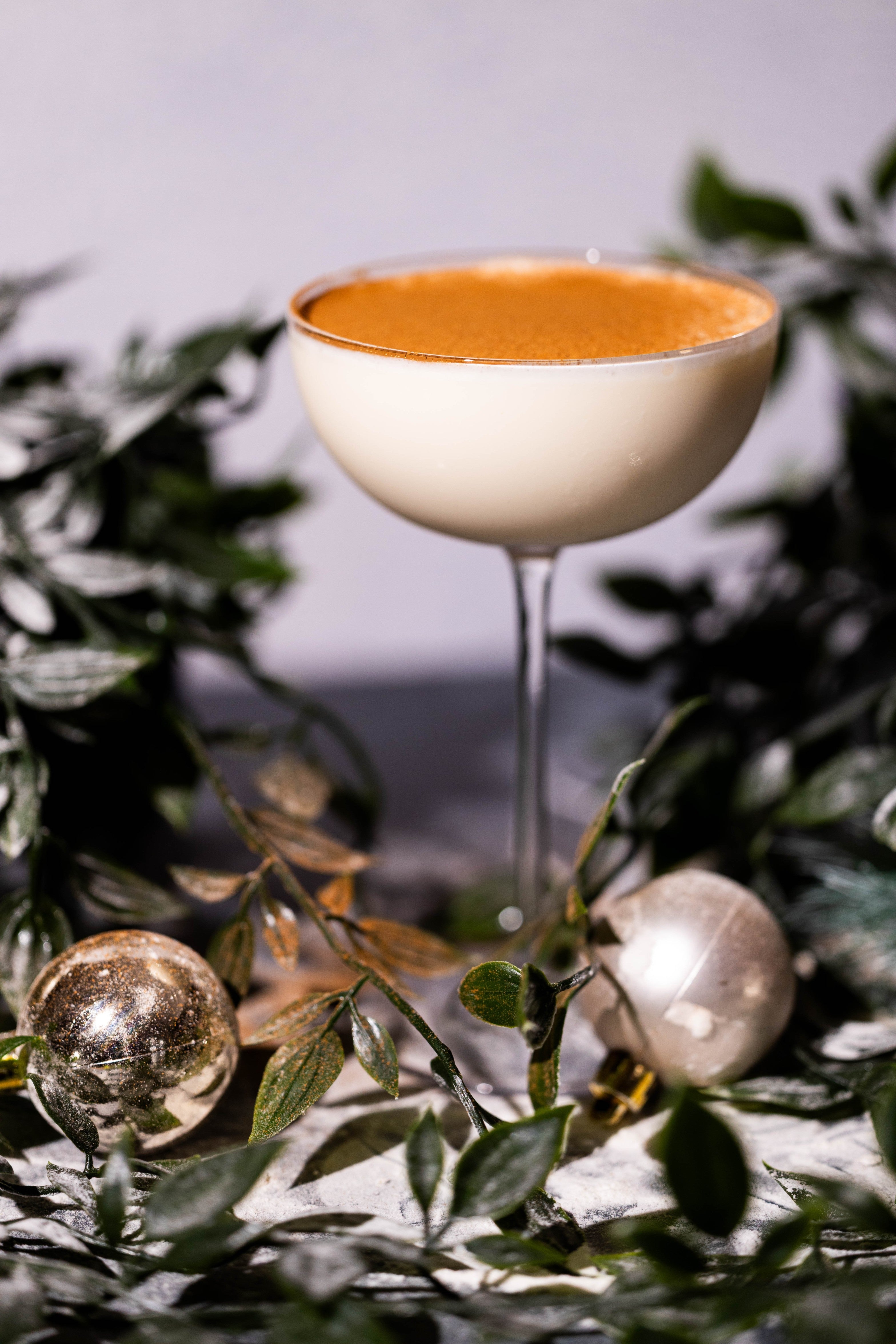 Mix spirits in glass with large ice cube, then add double cream and garnish.